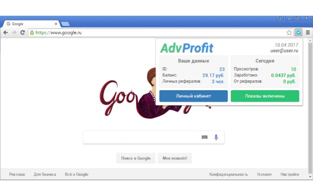 AdvProfit is the best site to earn from every site you visit. It replaces Google Ads With Russian Ads And Earn In Return. This extension replaces every google ads in website you visit and give you money in return of CPC. You can withdraw to Payeer, then on your credit card. 100% legit. You can even advertise, if you want to. As it gives you proits from advertisements, that is why its called ADVProfit.